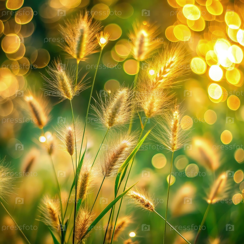 Золотые листья травы сияют в полуденном солнечном свете
