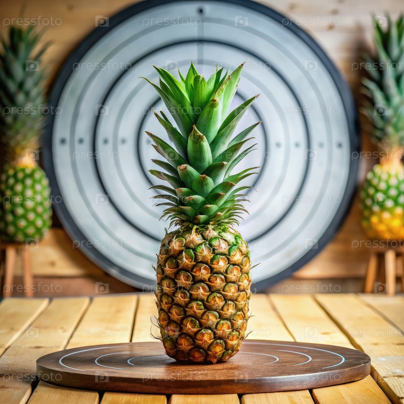 Ананас, установленный в качестве мишени на стрелковом полигоне во время дневного света