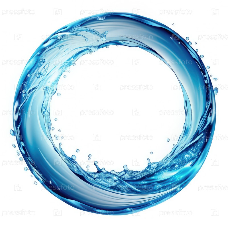 Синяя струя воды образует круг на белом фоне