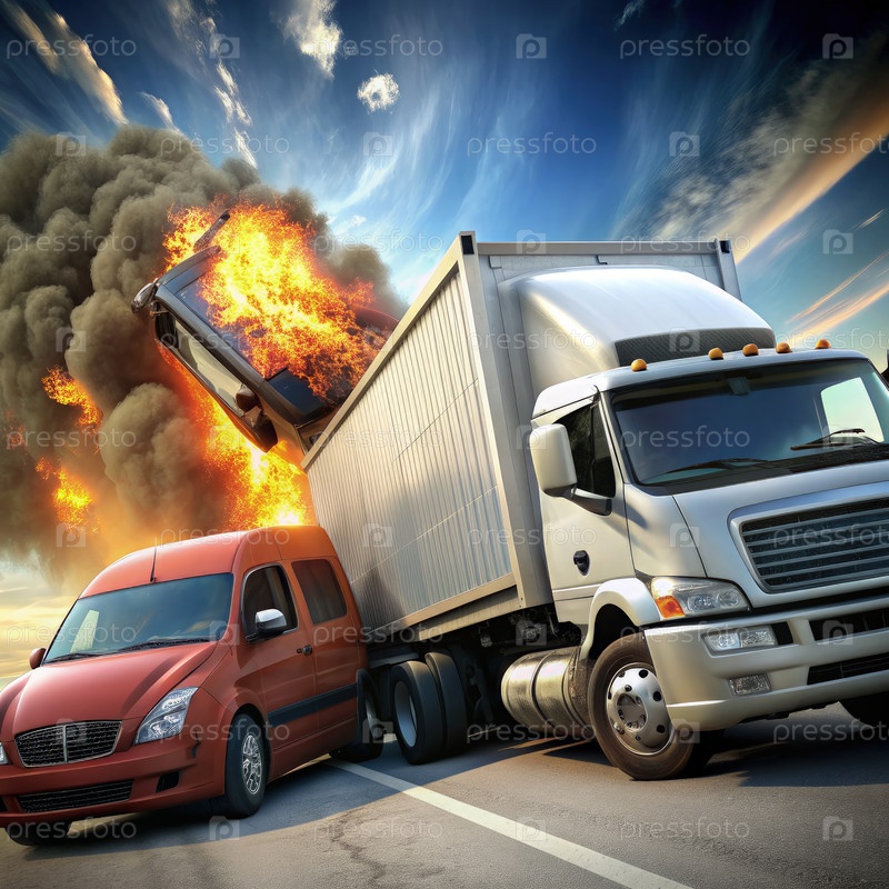 Огненная автомобильная авария с участием полугрузовика и фургона на открытой автомагистрали