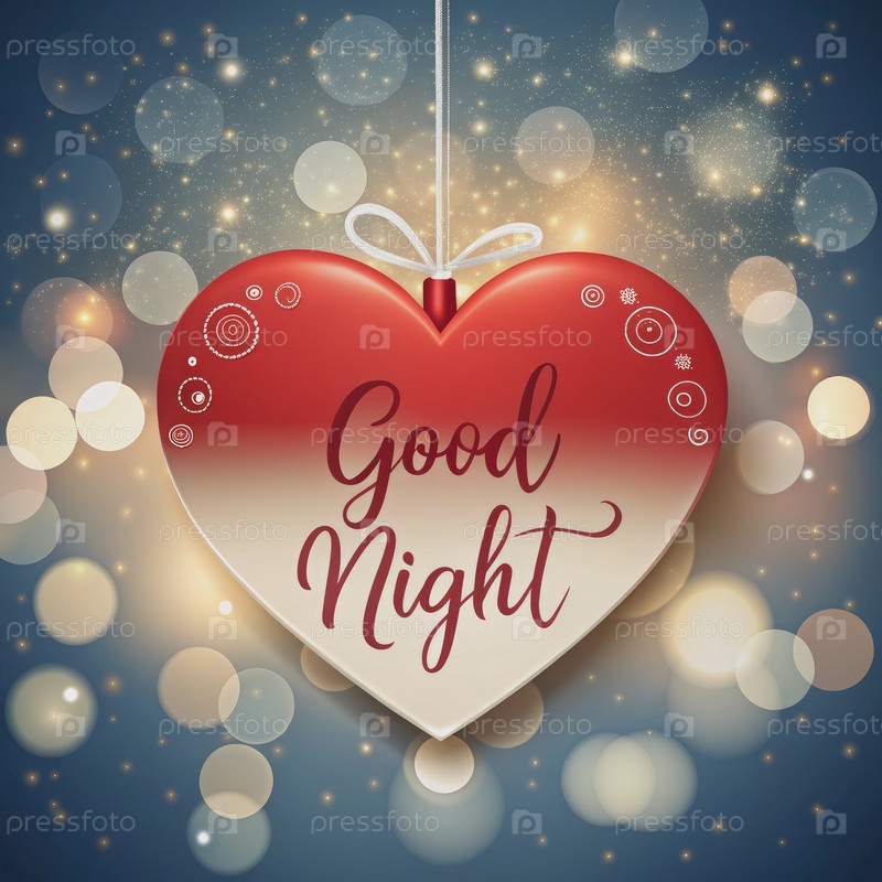 Красное и белое сердце в форме открытки "Спокойной ночи" с искрящимися огнями