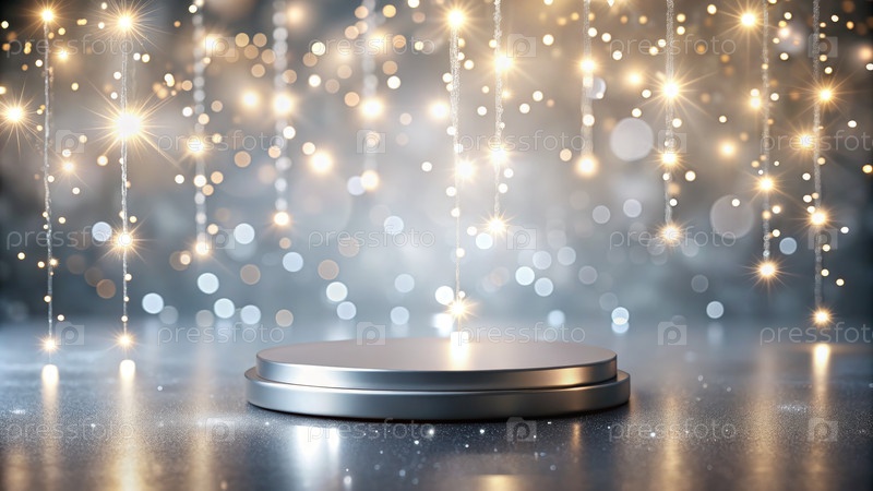 Элегантный серебряный подиум демонстрируется под мягким освещением на праздничном мероприятии