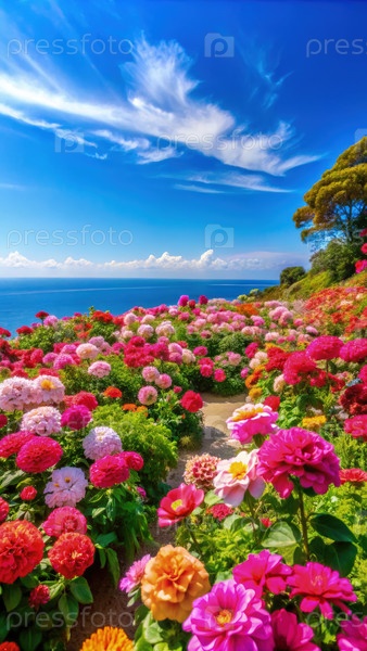 Красочное лето цветет вдоль прибрежной тропы