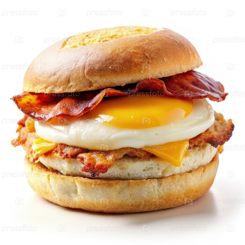 Вкусный бутерброд для завтрака с яйцами, беконом и сыром