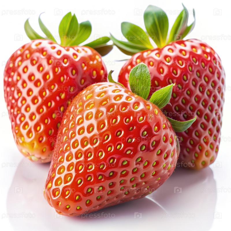 Три спелых клубники на белом фоне