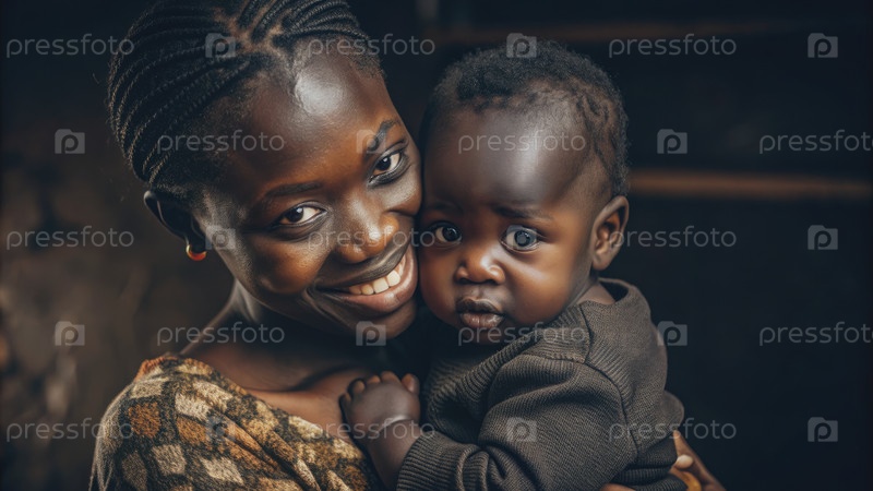 Молодая африканская мать держит своего ребенка близко в любящем объятии