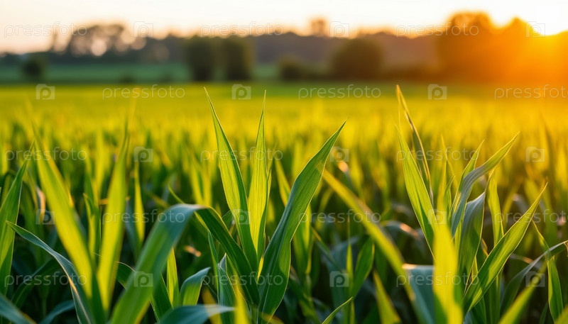 Саженцы сельскохозяйственных культур в зеленом поле фермы на восходе солнца свежее утро сельское хозяйство ландшафт