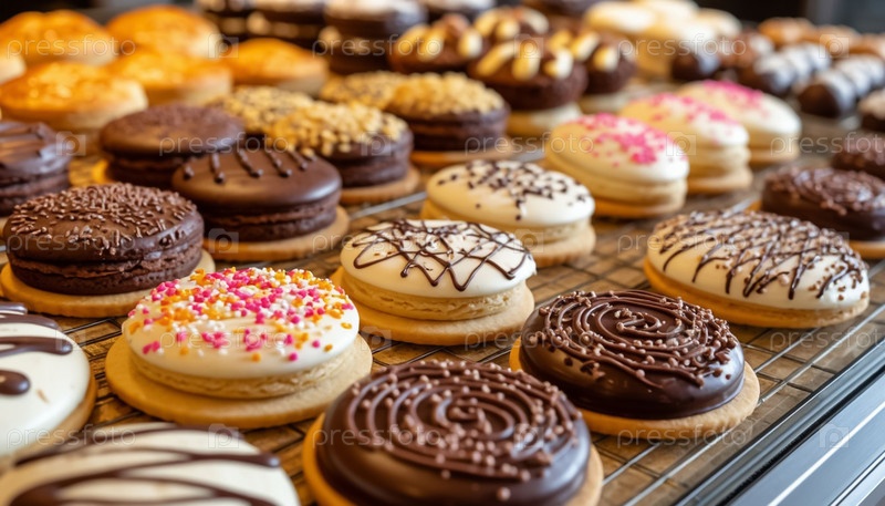 Живое отображение мороженого печенья и шоколадной выпечки в коробке для хлебобулочных изделий