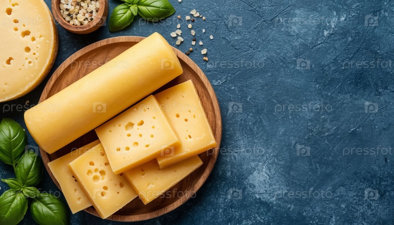 Сортированное разнообразие сыров на синем фоне Top View Food Photography Platter