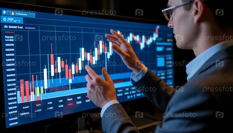 Указывая на график повышающейся тенденции на совещании исполнительного совета по цифровому дисплею