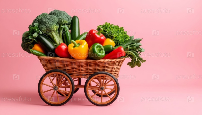 Деревянная корзина, полная свежих органических овощей Здоровая веганская диета Концепция Дисплея фермерского рынка