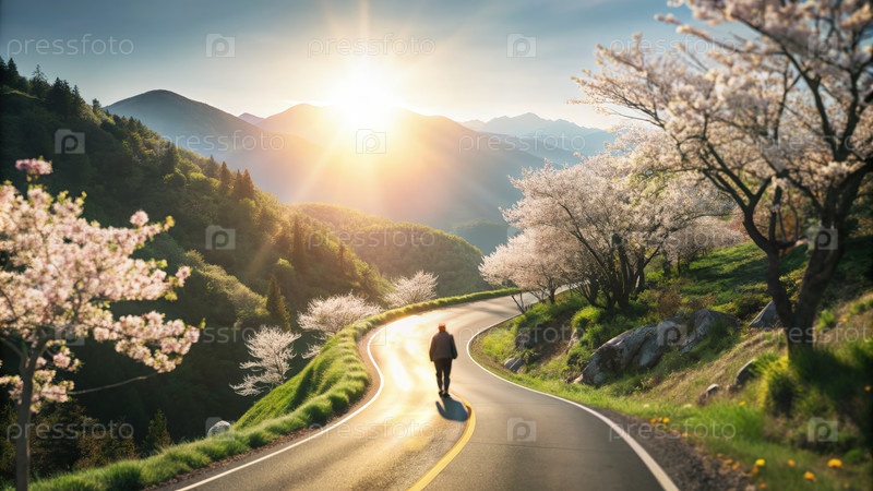 Дорога через горы Блосом-Ладен на восходе солнца с прогулкой ходока
