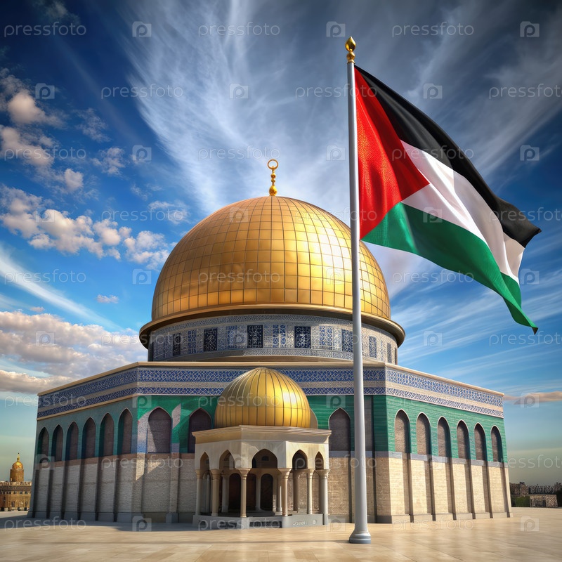 Купол каменной мечети в Иерусалиме с палестинским флагом
