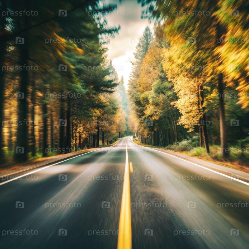 Вождение по лесной дороге осенью с размытым движением. генеративный ИИ