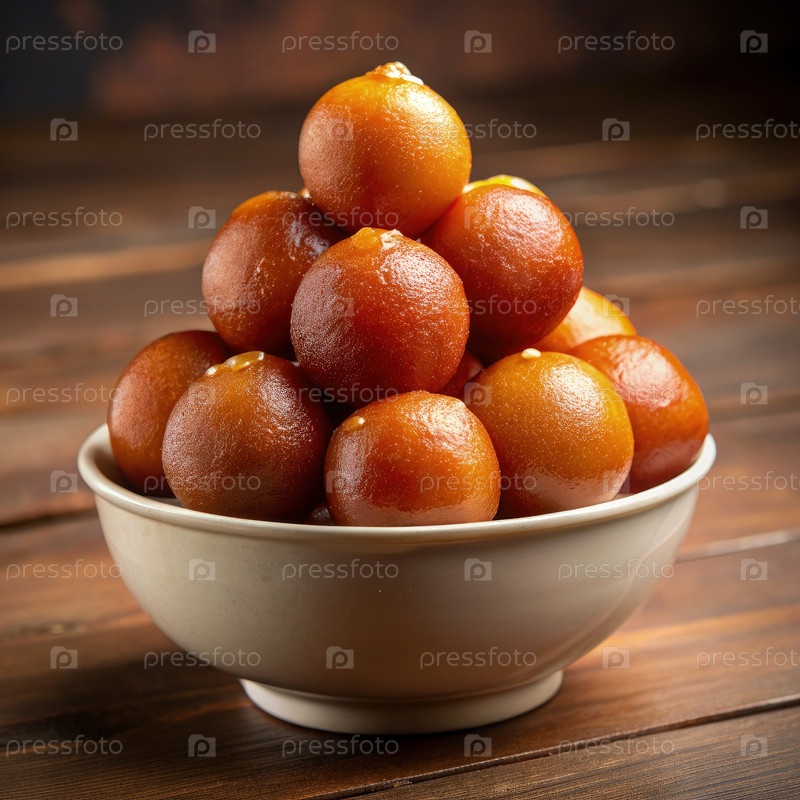 Вкусный десерт Gulab Jamun в белой миске на деревянном столе
