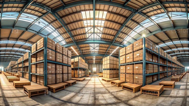 Интерьер заброшенного склада запечатлен в стиле Pixar с помощью контейнеров для хранения и деревянных полок