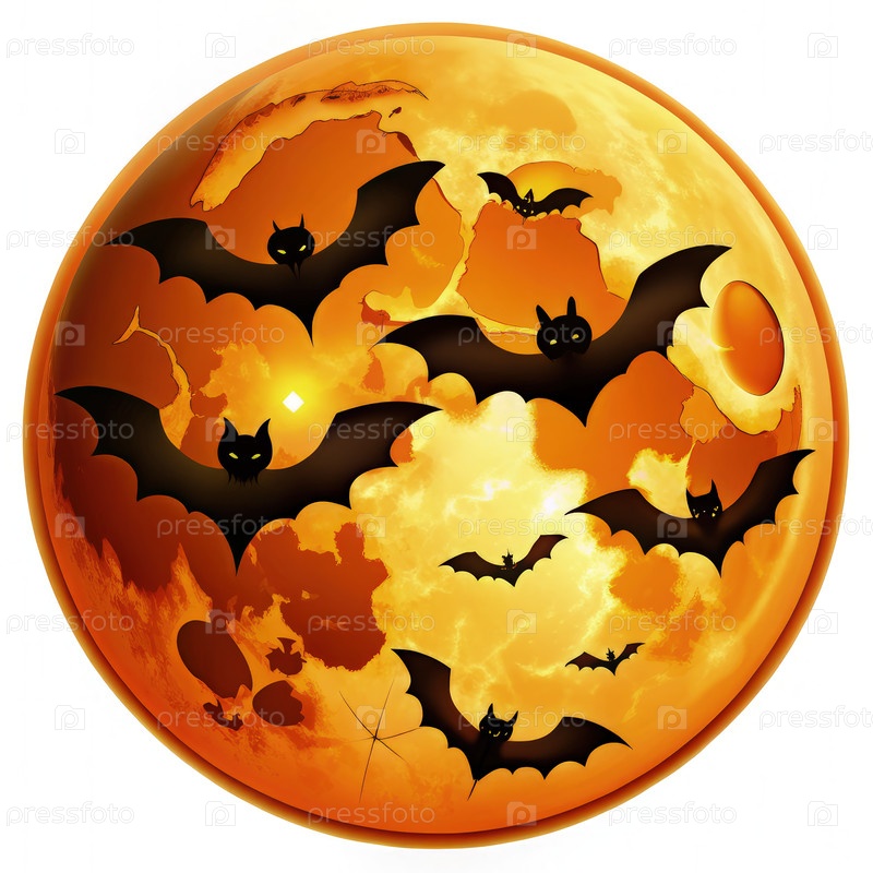 Мультфильм "Оранжевая ночная луна с летучими мышами"