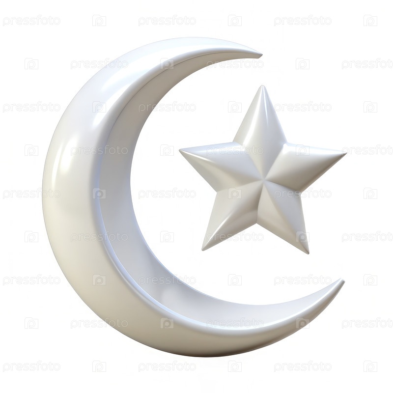 Белый лунный и звездный блеск украшения на белом фоне. генеративная AI