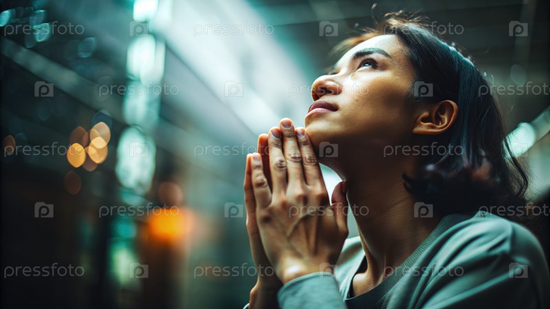 Человек, молящийся в городской обстановке с зажатыми руками