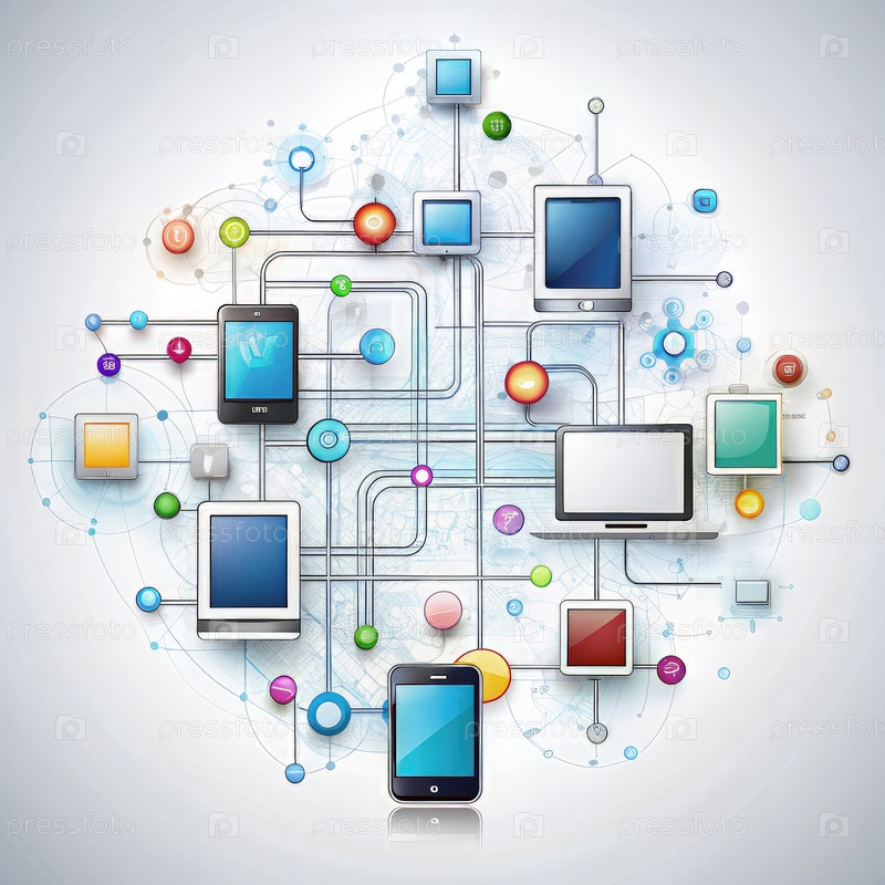 Абстрактные представления технологий, связанных линиями и цветными кругами. генеративный ИИ