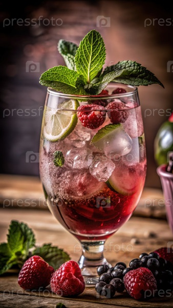 Освежающий летний напиток с ягодами и мятой, украшенный в уютной обстановке