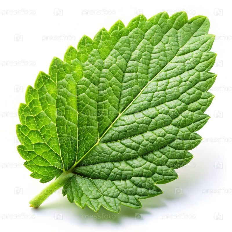 Одинокий зеленый лимонный бальзам лист на белом фоне