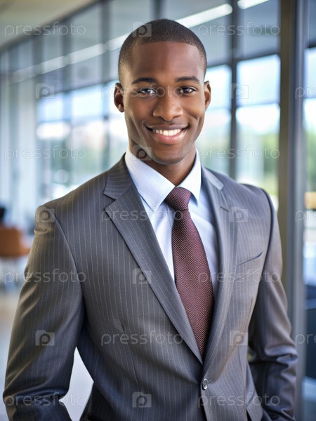 Уверенный молодой бизнесмен улыбается в современном офисе
