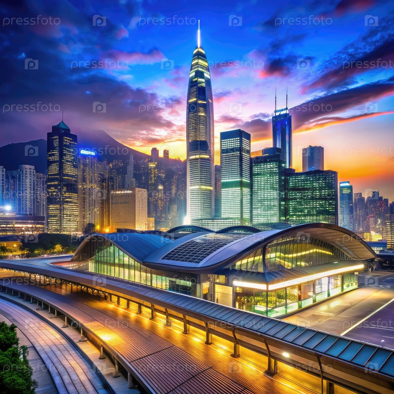 Гонконгская станция МТР на рассвете с городским горизонтом