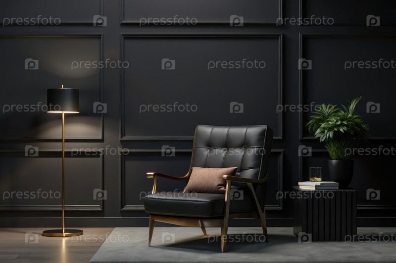 Черное кожаное кресло в современной комнате ожидания