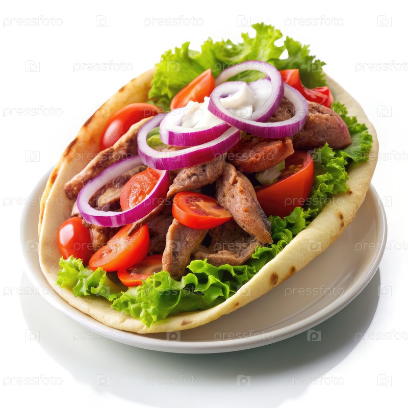 Вкусный бутерброд Gyros с помидорами, луком и салатами