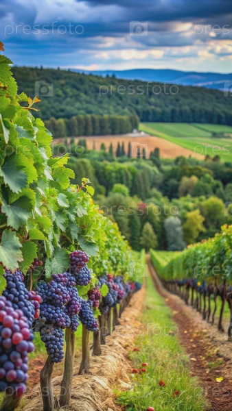 Ряд зрелых виноградных лоз Бургундии в лесном винограднике