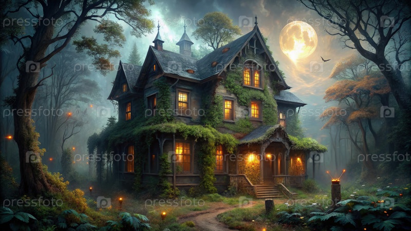 Завораживающий вечер Хэллоуина в жутком призрачном особняке, окруженном мистическим лесом
