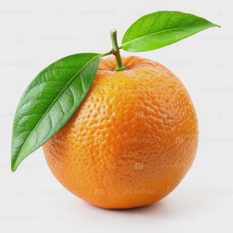 Свежий апельсиновый фрукт с зелеными листьями на белом фоне