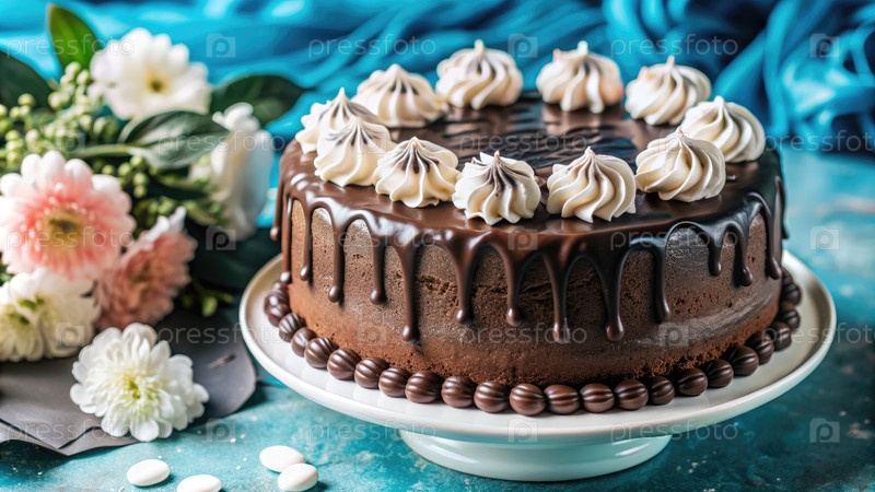 Вкусный шоколадный торт с вип-кремом и шоколадной кашей. генеративная ИИ