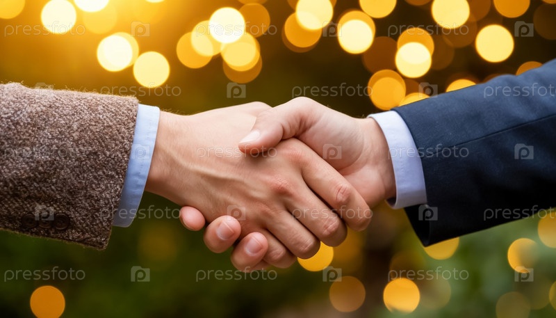 Рукопожатие разных рук в золотом свете, представляющее доверие и командную работу