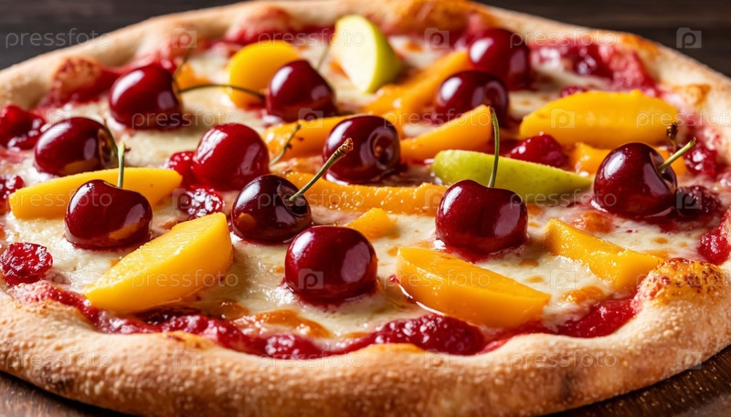 Домашняя сладкая пицца с свежими фруктовыми начинками Вишня и ананас Слайс еды Фото