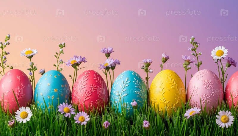 Украшенные окрашенные пасхальные яйца с цветочными узорами Многоцветная концепция праздничного украшения