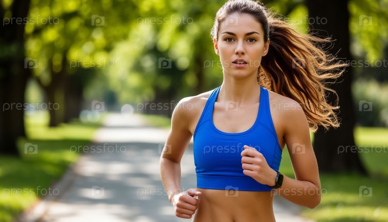 Атлетическая женщина бегает в Грин-парке Летняя утренняя тренировка Кардиоактивность Сцена