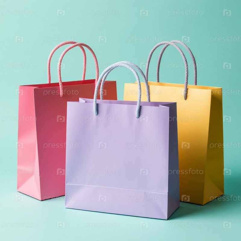 Пастельные бумажные пакеты и упаковки на светлом фоне