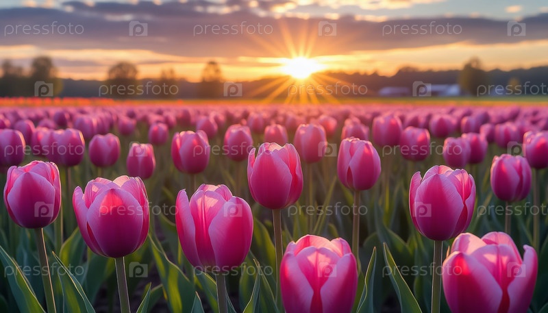 Прекрасный розовый тюльпан цветок луга восход солнца пейзаж линия художественный лист