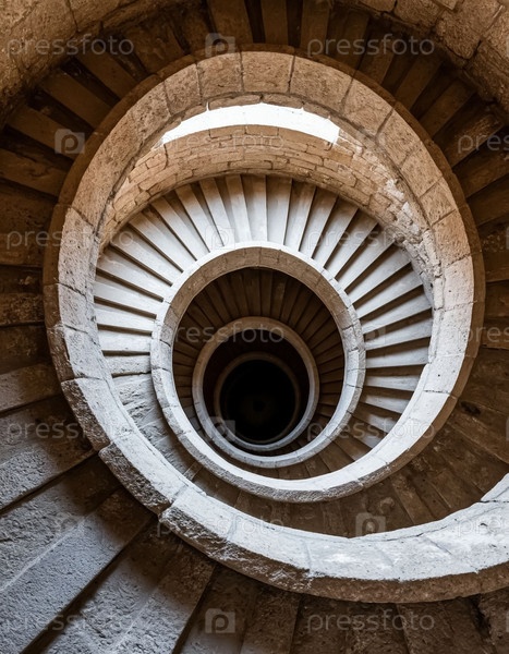 Каменная спиральная лестница с ступеньками, ведущими вверх Архитектурные детали