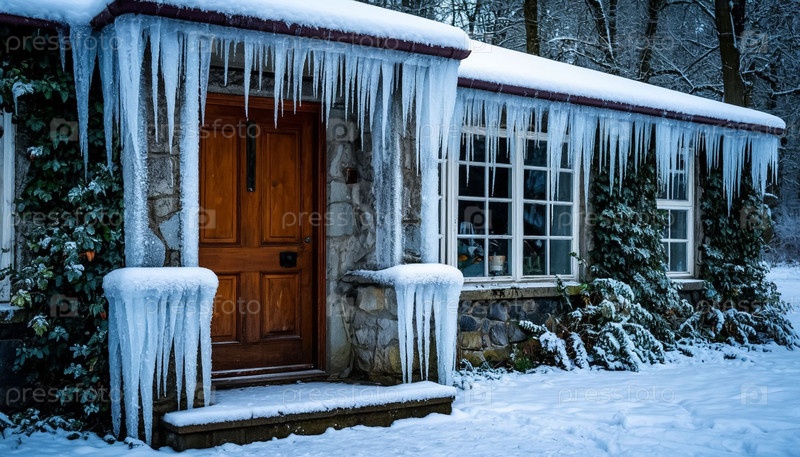 Аномальный мороз Ледяной крыльцо дома Экстремально холодная погода