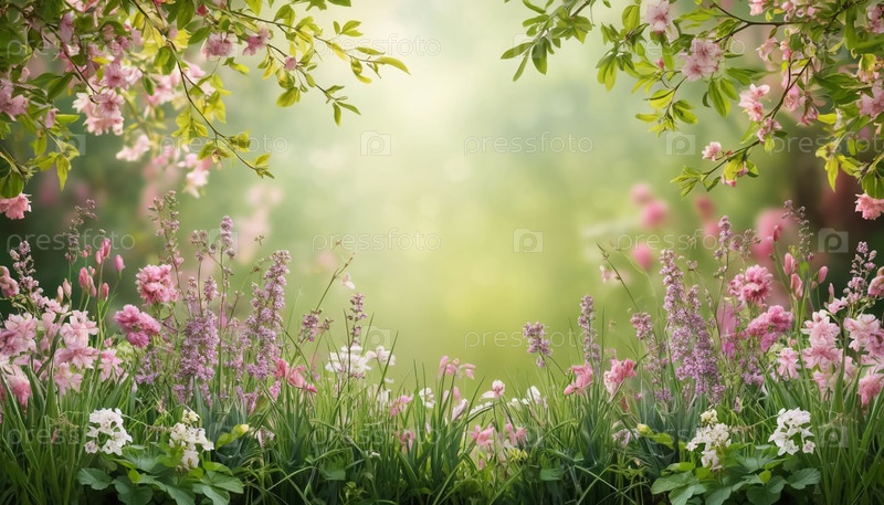 Романтический волшебный весенний ландшафт цветочный луг садовой сад ИИ Красочная страница