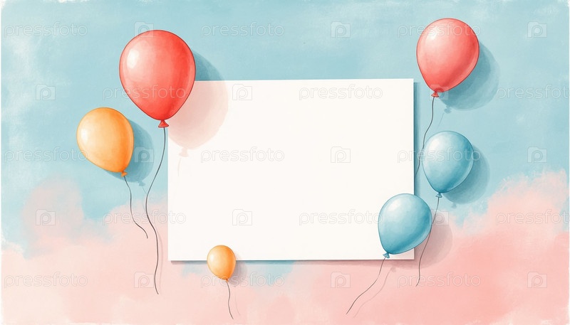 Пустой шаблон поздравительной карточки акварель с воздушными шарами Идеально подходит для выпуска День рождения или дизайн баннера