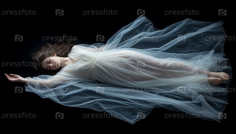 Прозрачная эфирная фигура привидения плавает на темном фоне Красотка для мистического духа