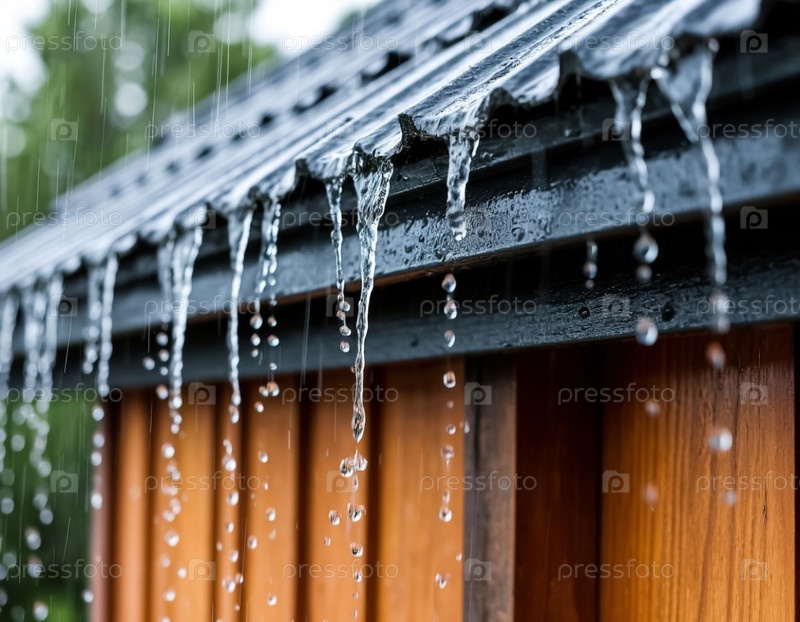 Капли дождя в потоке на поверхности крыши Summer Macro