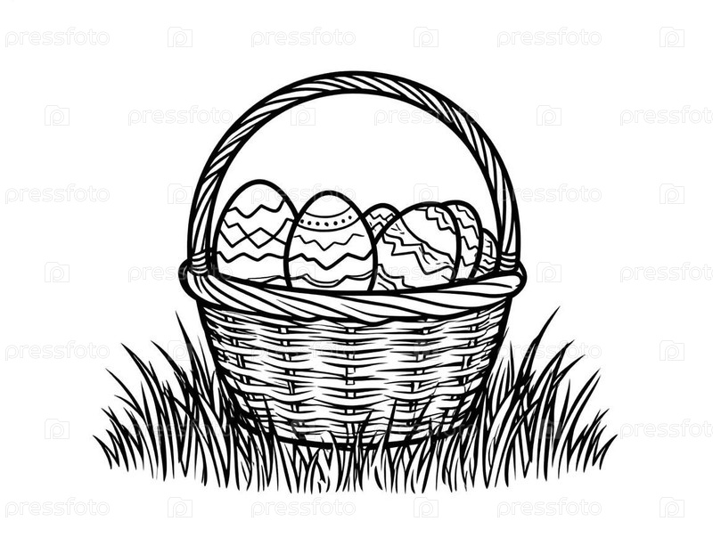 Пасхальный окрасочный лист для детей: Иллюстрация яичной корзины