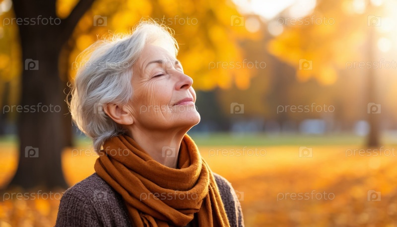Женщина в Осеннем парке, дышащая свежим озонобогатым воздухом