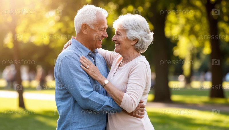 Счастливая пожилая пара танцует вместе в солнечном летнем парке Joyful Retirement Lifestyle Concept