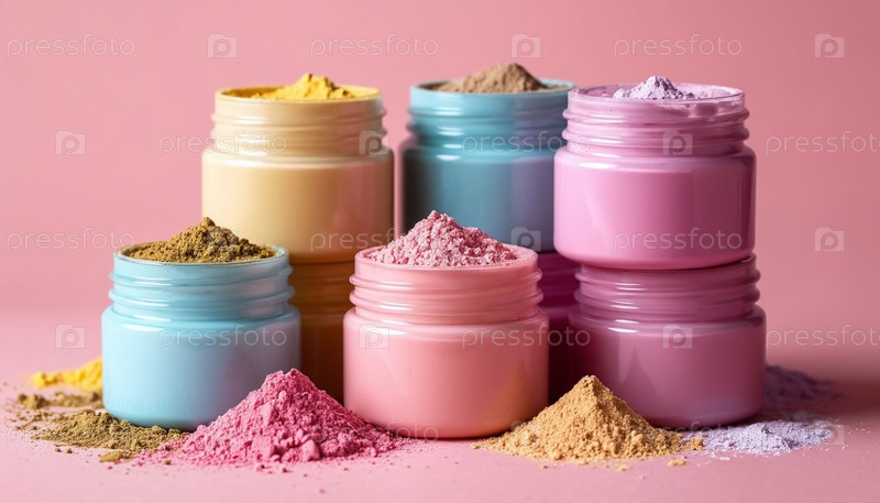 Мягкий пастельный цвет свободный порошок в стеклянных банках эстетический макияж натюрморт